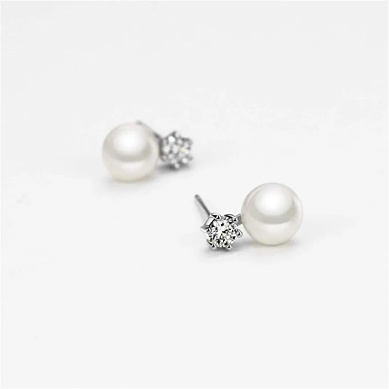 Dainashi 925 Sterling Silver 8-9mm natural Freshwater Pearl Zircon Rhinestone Stud earrings High Jewelry Gifts for Women
