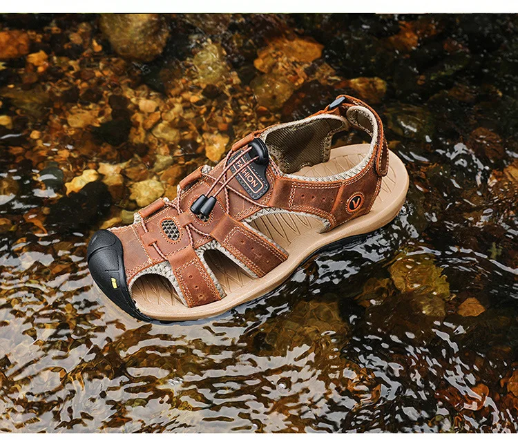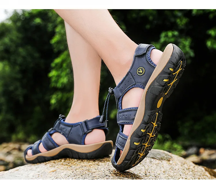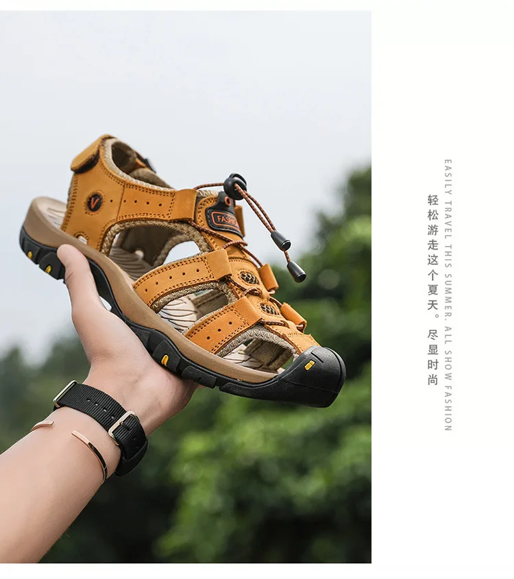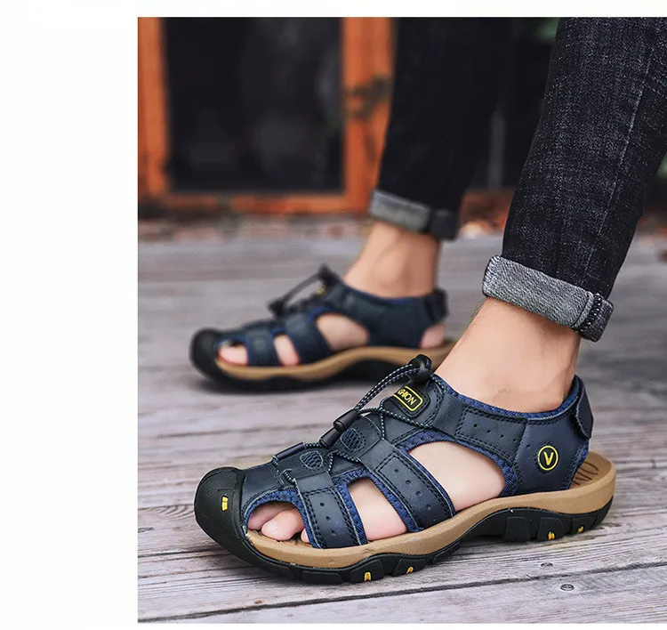 male Sandals summer leather sandals man beach and outdoor sandals casual summer shoes boy anti-slip man sandals plus size 38-48