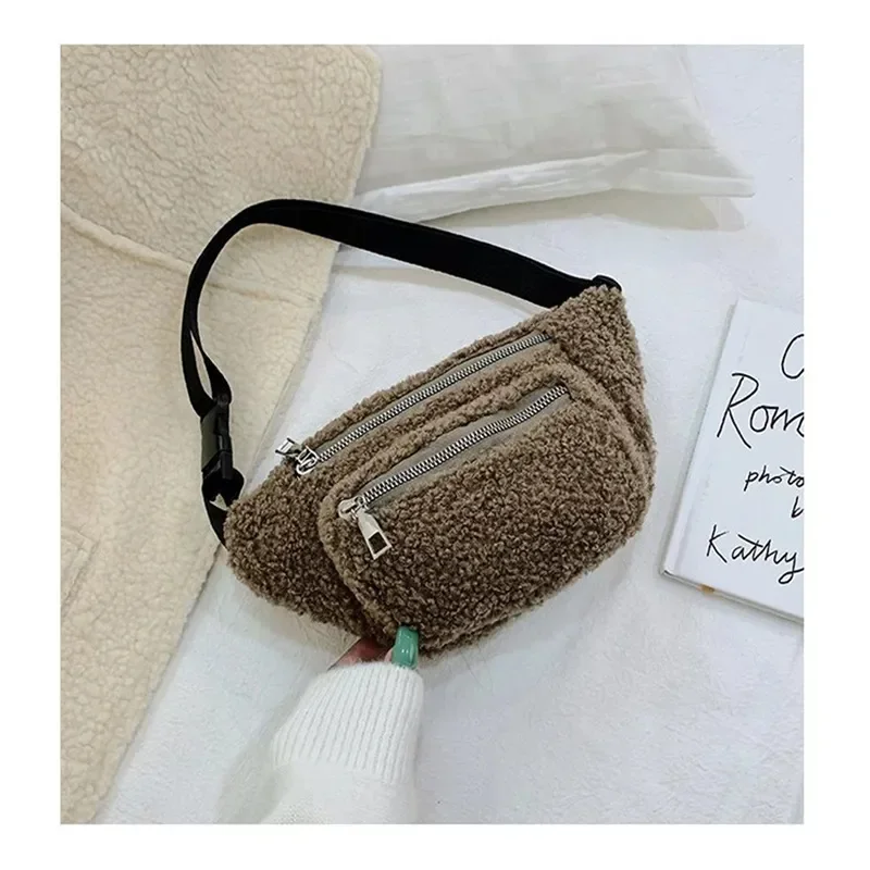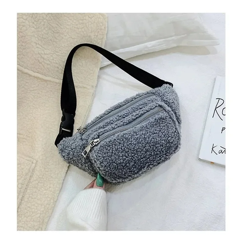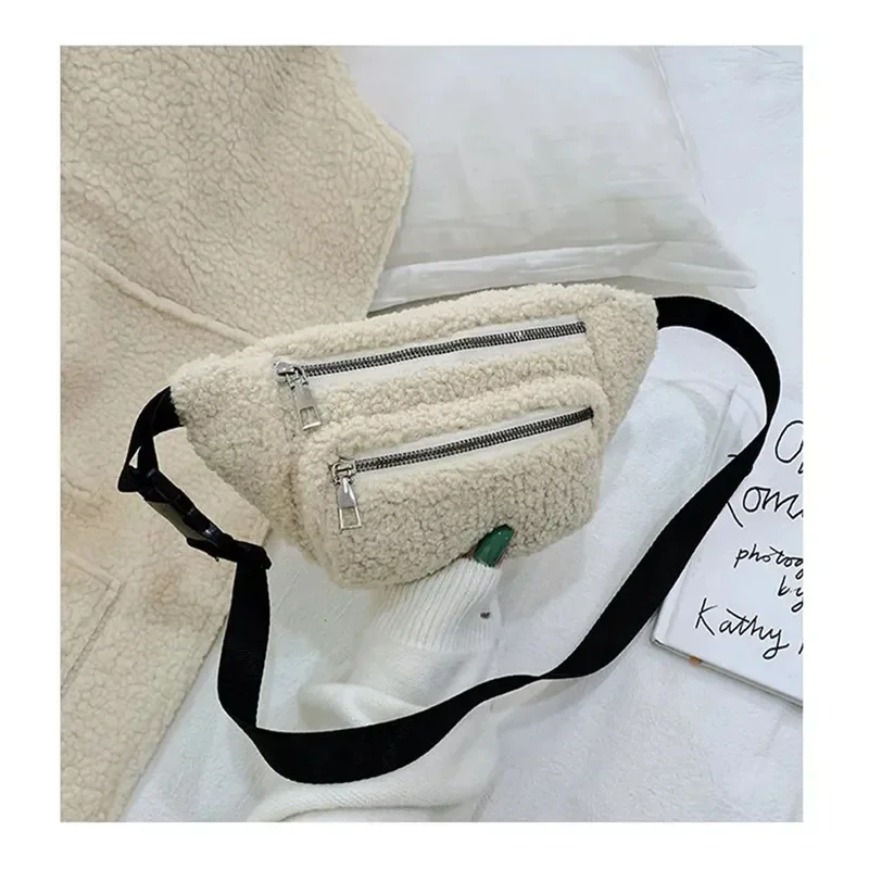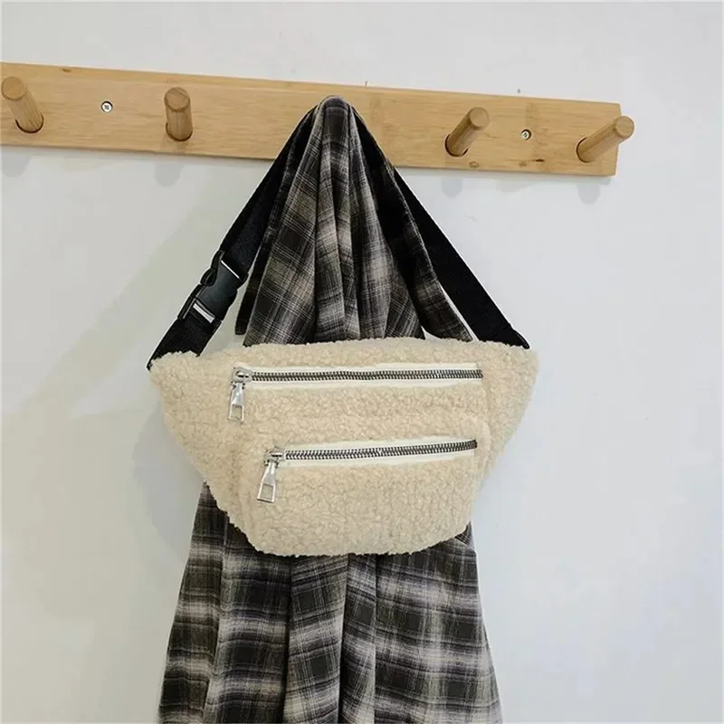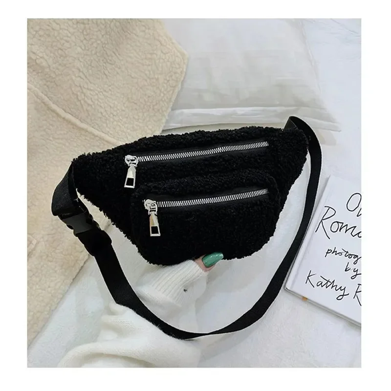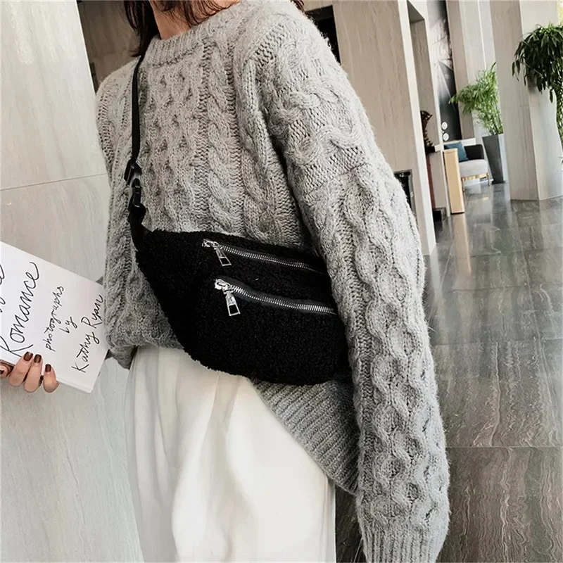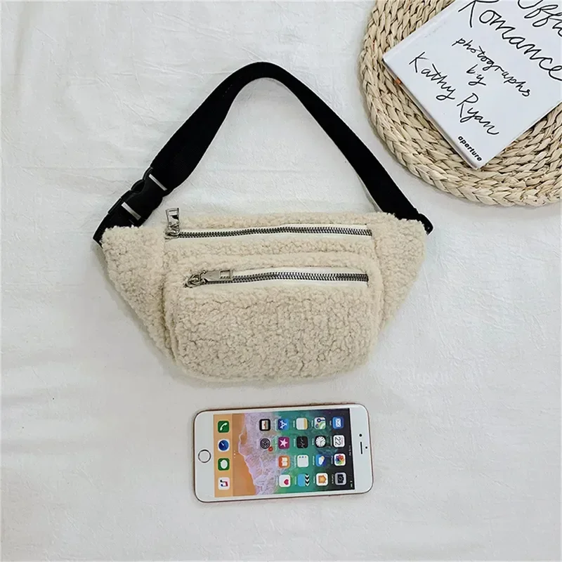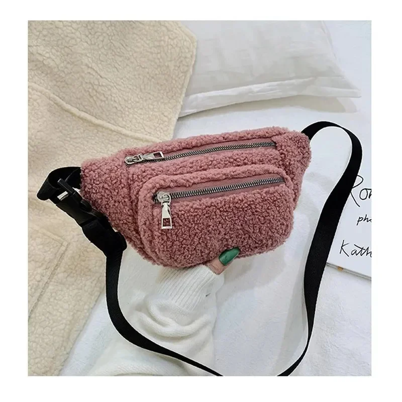 Plush Women’s Waist Bag Solid Color Belt Bags Shoulder