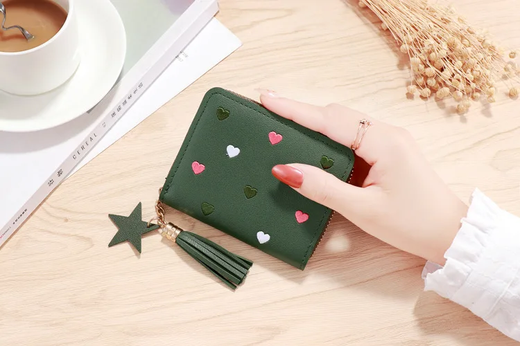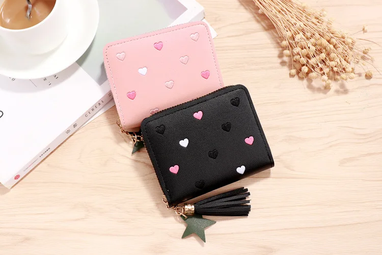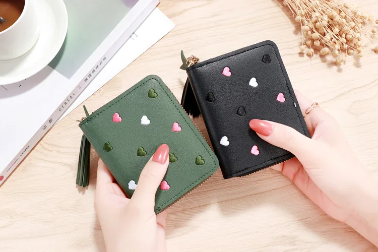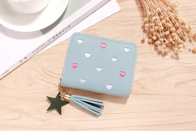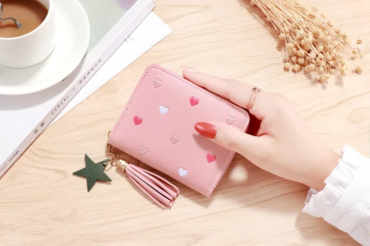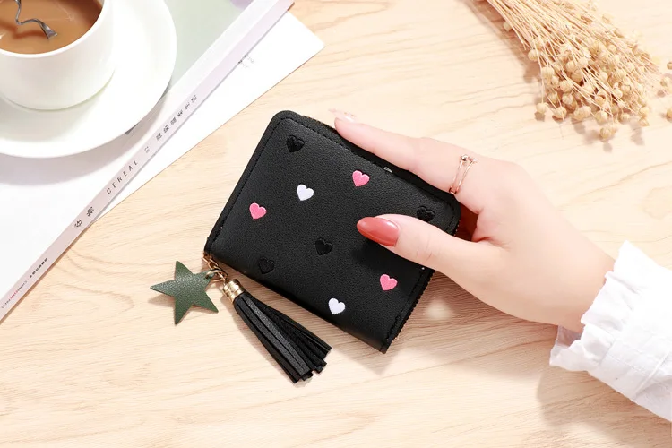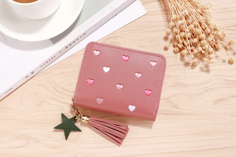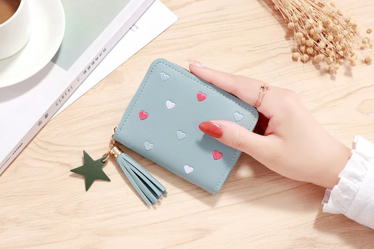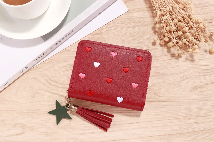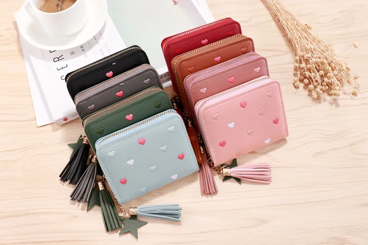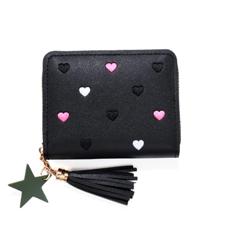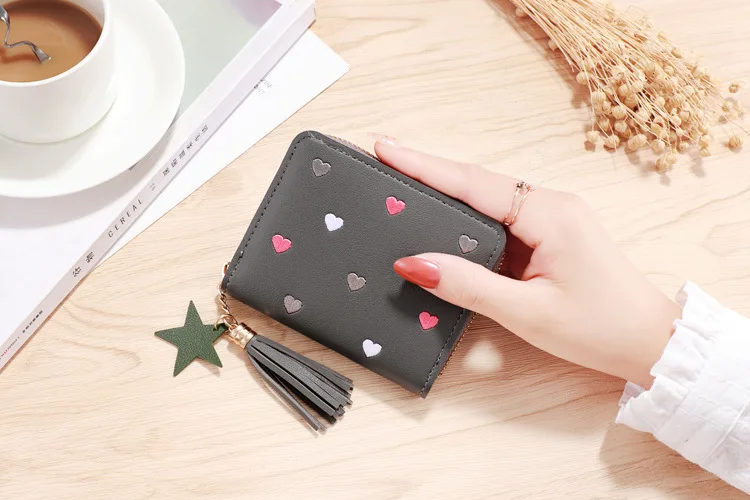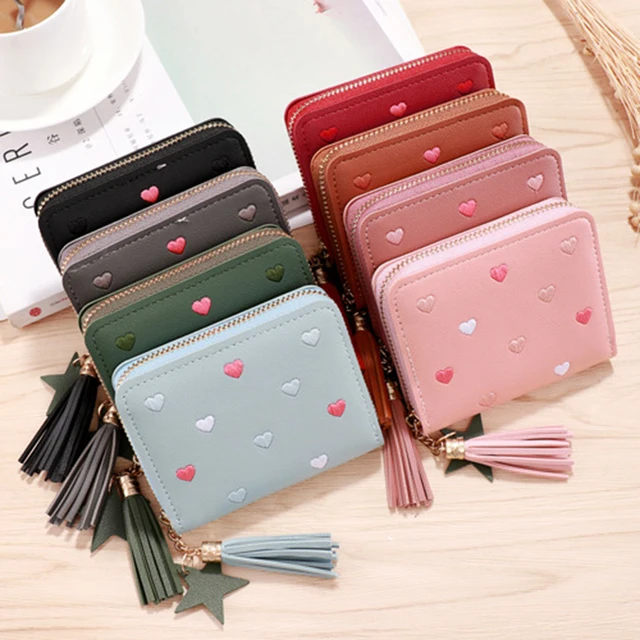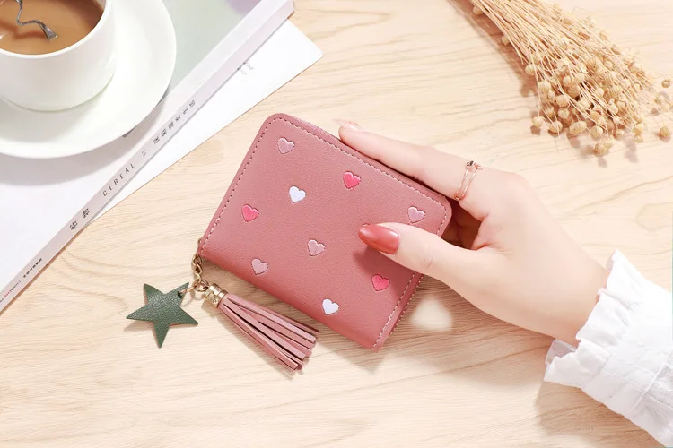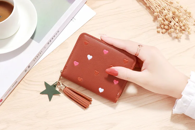 1pcs Love Tassel Women Wallet Ladies Mini Small Short Wallet Cute Girl Zipper Pu Leather Coin Purse Female Hand Wallet Purse