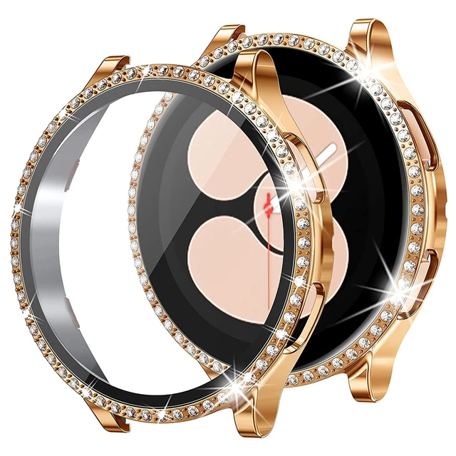 For samsung galaxy watch 4 5 6 band + case 40mm 44mm mesh loop Stainless steel strap bling case Tempered glass screen protector